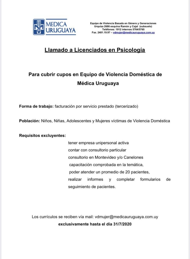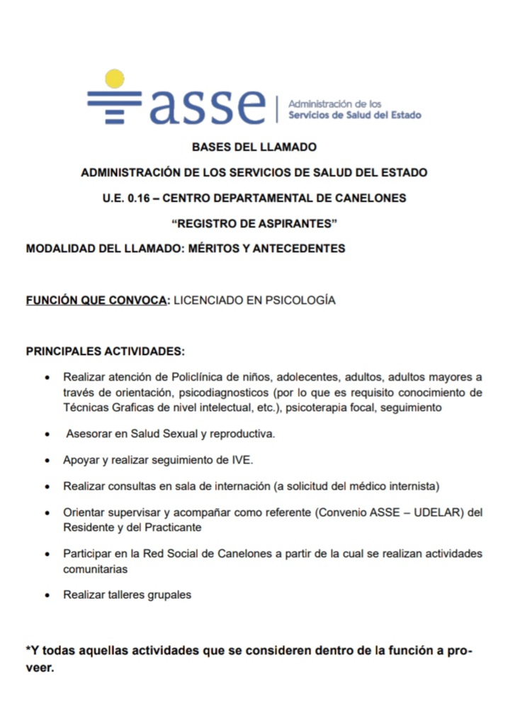 Llamado público de oposición y méritos para incorporar Licenciado/a en Psicologia y Licenciado/a en Trabajo Social